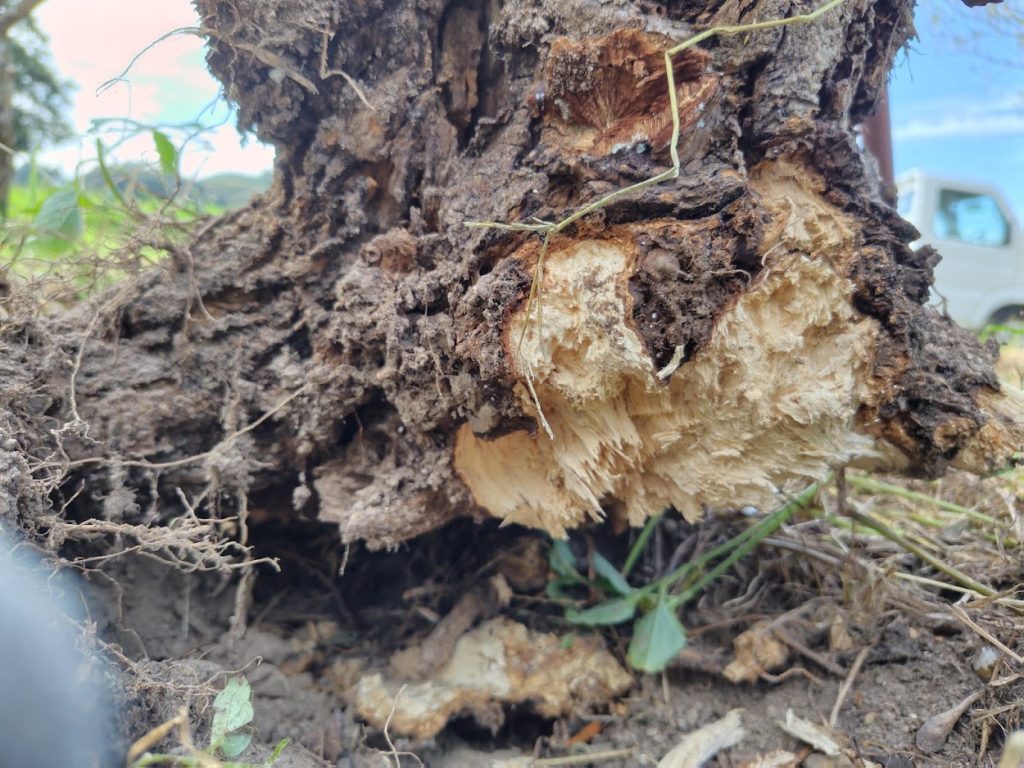 二週間ほど前の事になるが、圃場をのぞいたらネバティロの木が倒れていた・・・。強風が吹いた覚えもないし 原因が判らない? 見事に根元から折れていて まるで車などに倒されたよう。