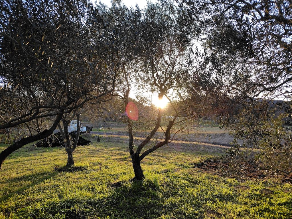 3月も終盤 陽がかなり長くなり 18時でも明るい。少し手を緩めて 夕日を見上げると 黄金色に光るオリーブの木々達
